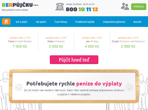 S BerPůjčkou můžete získat prakticky ihned až 10 000 Kč. Splatnost si nastavíte na 20 nebo 30 dnů. Vše se obejde bez formalit, posouzení a schválení žádosti je otázkou několika minut.
