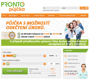 S Pronto Půjčkou získáte až 100 000 Kč na cokoliv. Splatnost si můžete nastavit mezi 12 a 48 měsíci. Nekontrolují se registry a půjčku lze kompletně vyřídit online bez osobního kontaktu. Úvěr můžete kdykoliv splatit předčasně zcela zdarma.
